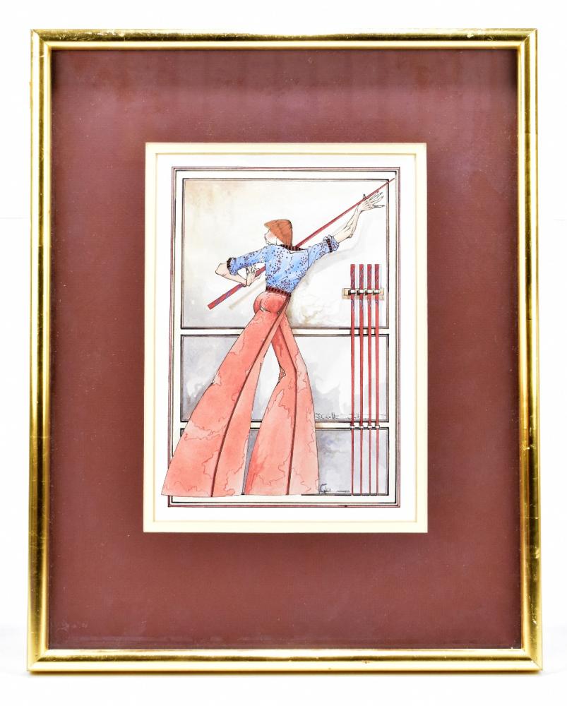 Lot 1541 of 3033: J.C. GRAHAM ILLINGWORTH (born 1953); watercolour 'Cue', signed and titled, the image 25 x 18cm, framed and glazed. (D)