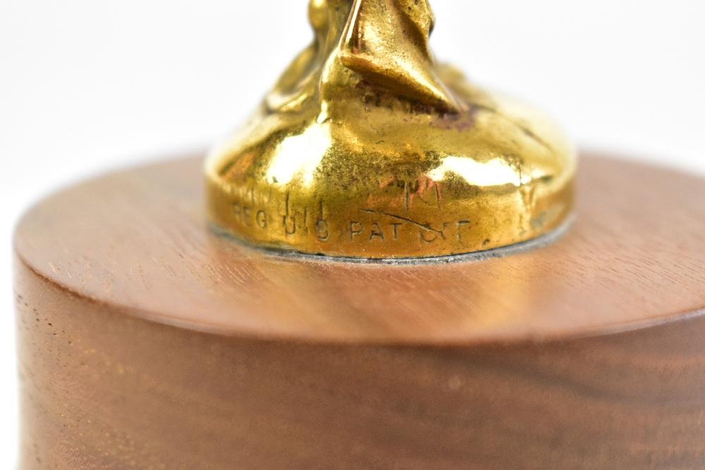 Lot 2006 of 3033: ROLLS-ROYCE SPIRIT OF ECSTASY; a car mascot designed by Charles Robinson Sykes, stamped to the front of the base. ‘ROLLS-ROYCE’ and to the back of the base. ‘Reg U.S Pat ??’, on later turned walnut base, mascot height 14cm, overall 20cm. Provenance: the Richard Martin Cannell (1943-2018) collection, known as 'Martin'