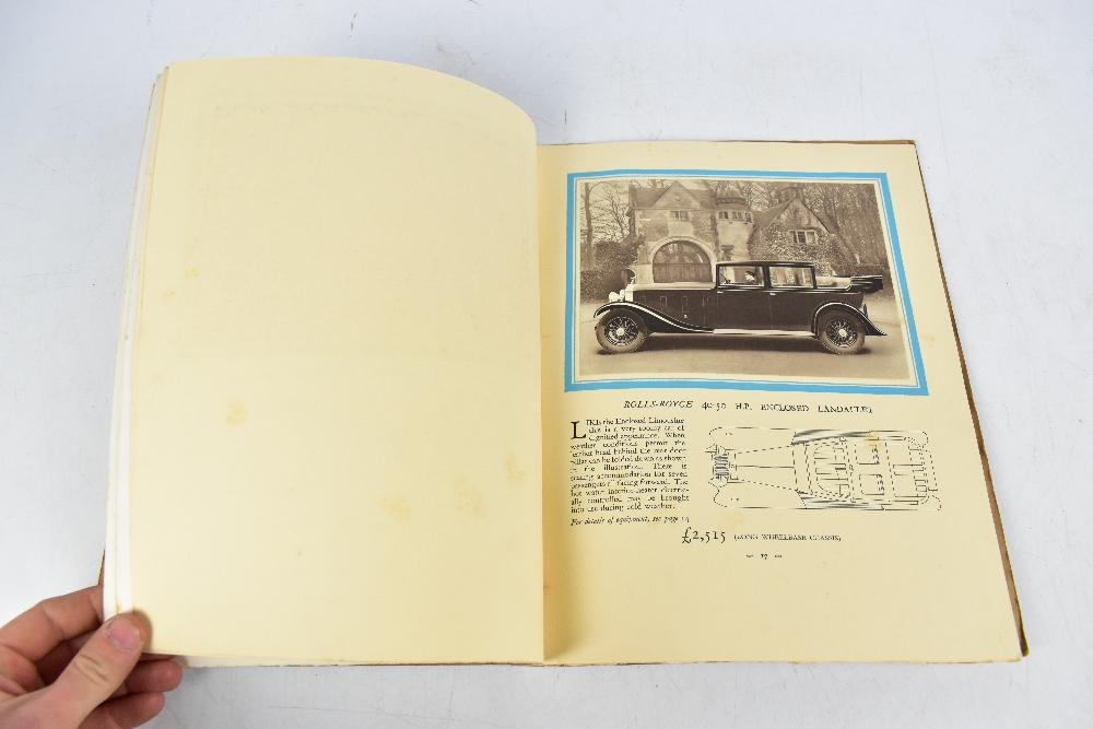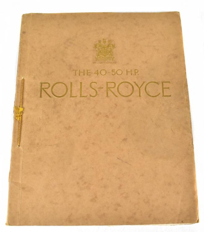 Lot 2013 of 3033: ROLLS-ROYCE; a brochure for the 40-50 H.P. Rolls-Royce Phantom II, with folding plate, tipped in plates and other illustrations, gold coloured string bound card cover with gilt lettering, Rolls-Royce Ltd Conduit Street (1) Provenance: the Richard Martin Cannell (1943-2018) collection, known as 'Martin'