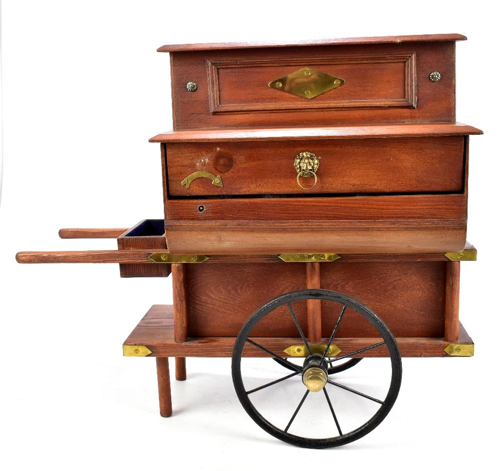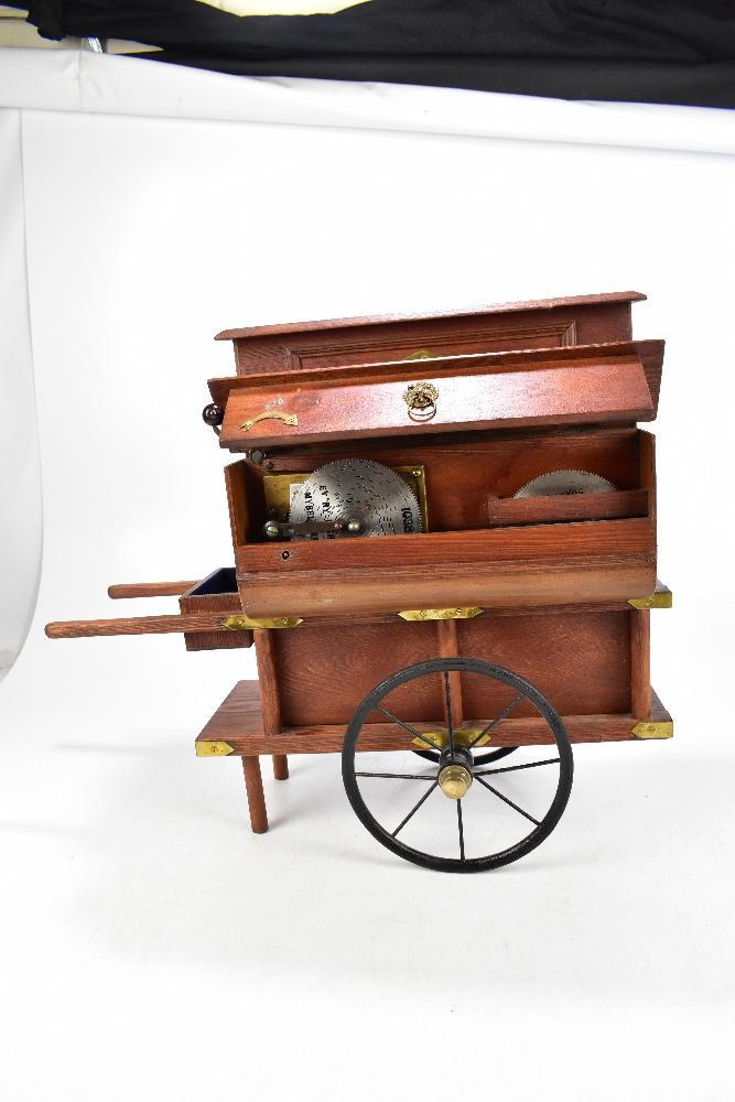 Lot 2159 of 3033: A Victorian-style musical organ grinder's organ, with brass fittings and black painted metal wheels, height 51cm.