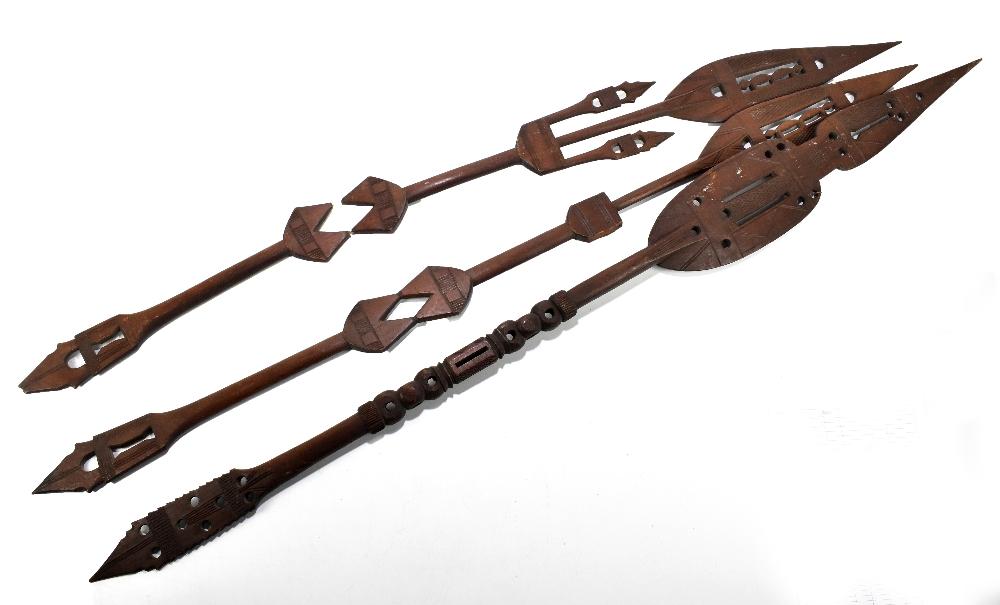 Lot 2181 of 3033: Three African carved tribal art panels, height of largest example 157cm (part af) (3).