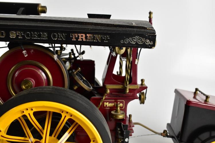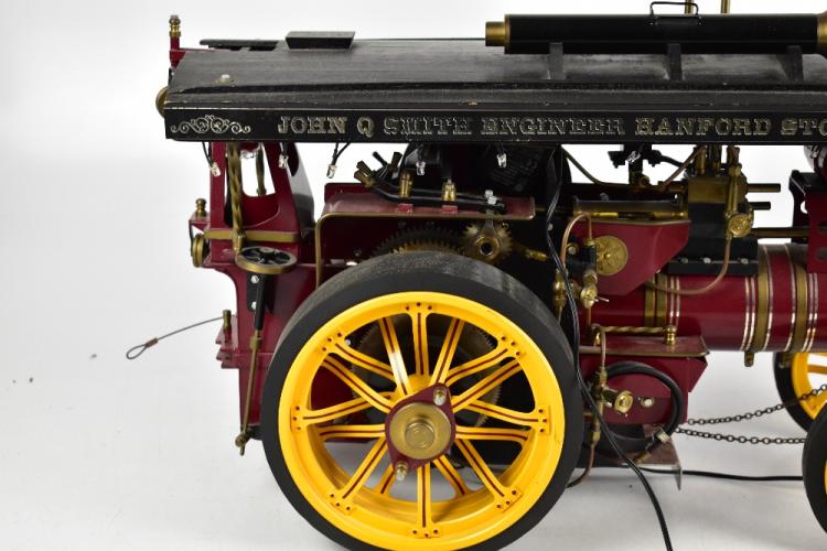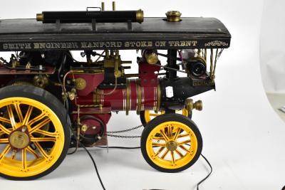 Lot 2231 of 3033: MARKIE MODELS; a live steam model of a showman's road locomotive engine 'John Q Smith, Engineers, Handford, Stoke on Trent', fitted with dynamo for electrical lights, complete with tender, height approx 36cm, overall length 77cm.