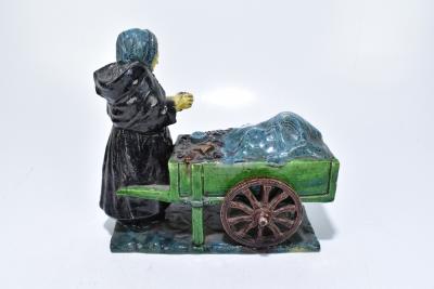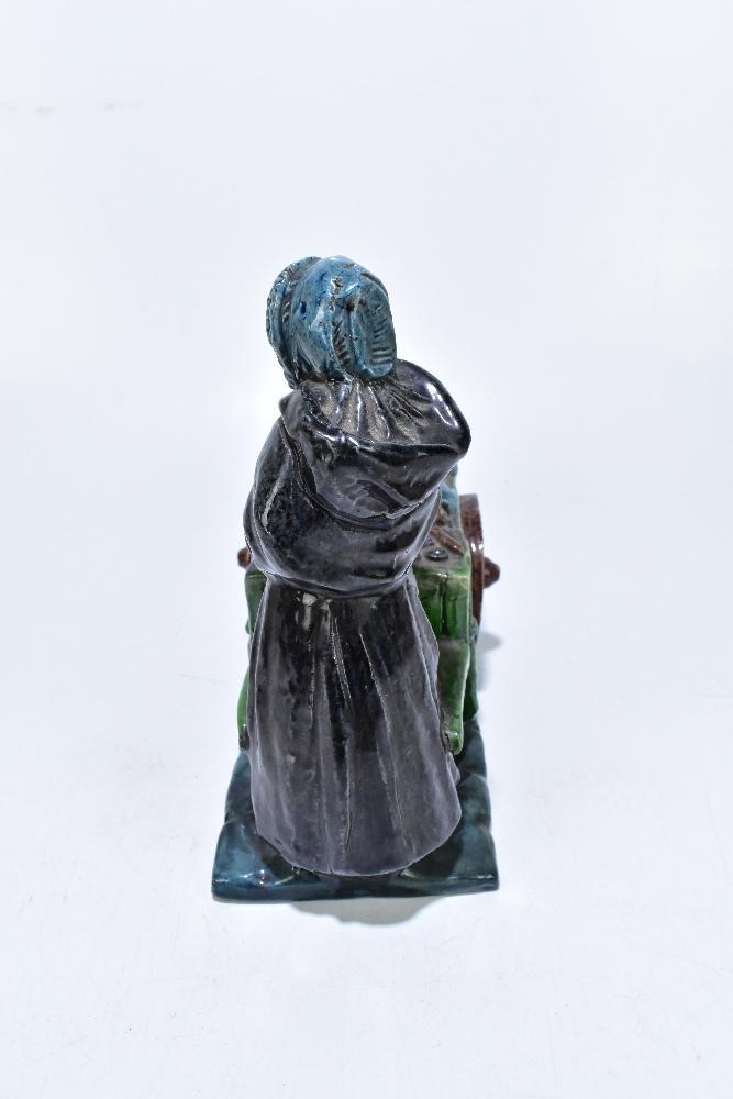 Lot 2406 of 3033: A 19th century majolica glazed figure group representing an elderly figure beside a cart, length 26cm.