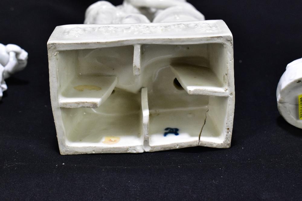 Lot 2407 of 3033: Three late 19th century Continental Blanc de Chine figures including Andromache, with blue painted mark to the underside, height 30cm, a figure group of seated children, on oval plinth base, width 16cm (3).