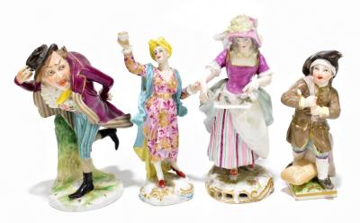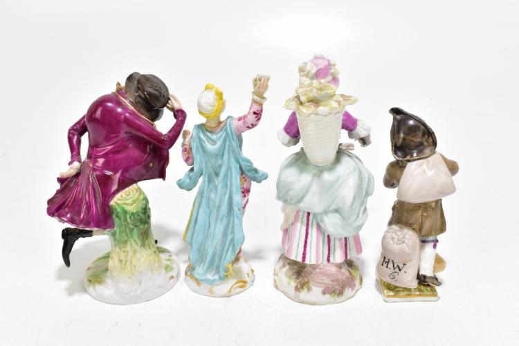 Lot 2411 of 3033: Four late 19th/early 20th century Continental porcelain figures including a KPM figure of a boy carrying a bag, inscribed 'HW' to the sack, height 12cm (4).