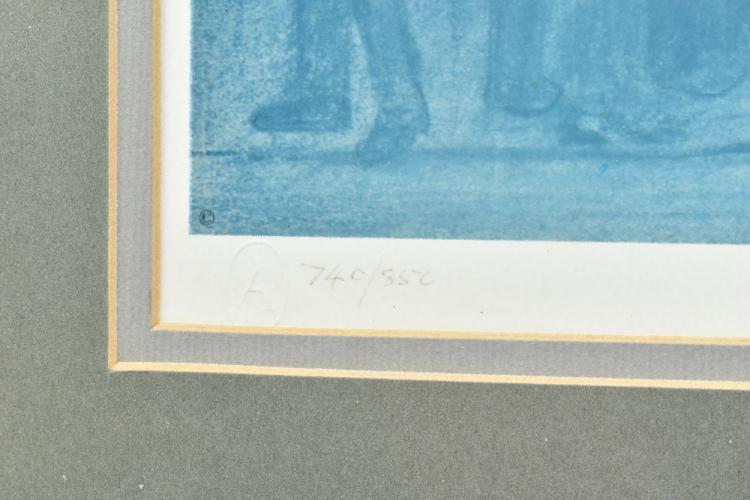 Lot 14 of 552: AFTER LAURENCE STEPHEN LOWRY RBA RA (1887-1976); a limited edition print, 'Outside the Mill 1930', 740/850, blind stamp lower left, 49.5 x 32.5cm, framed and glazed.