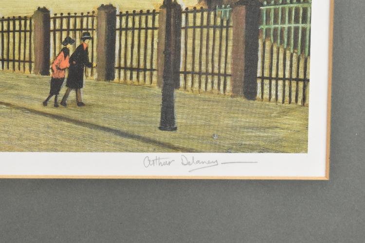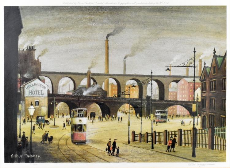 Lot 22 of 552: ARTHUR DELANEY (BRITISH, 1927-1987); limited edition colour print, 'Wellington Hotel', signed in pencil lower right and numbered 51/500, published by Grove Galleries Lt, 35 x 49cm, framed and glazed. (D)