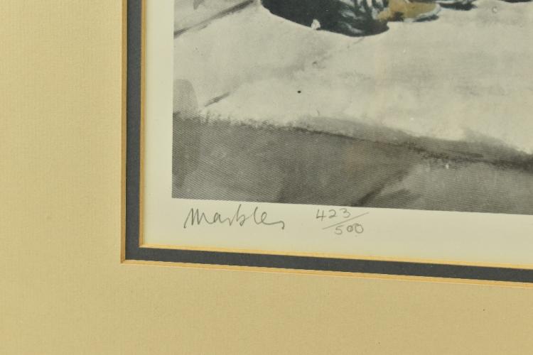 Lot 33 of 552: HAROLD FRANCIS RILEY BL DLitt FRCS (Hon) DFA ATC (born 1934); limited edition colour print, 'Marbles', signed lower right, titled in pencil lower left, 423/500, 32.5 x 31cm, framed and glazed. (D)