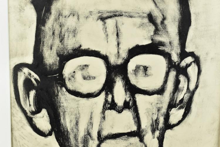Lot 38 of 552: ROGER HAMPSON (1925-1996); monoprint, portrait of a gentleman wearing glasses, signed lower right, 50 x 33.5cm, framed and glazed. (D)