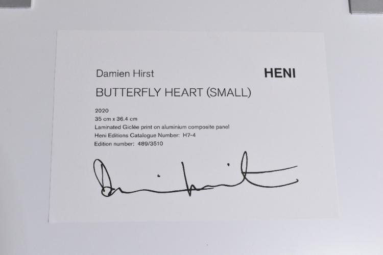 Lot 43 of 552: DAMIEN HIRST (born 1965); laminated giclée print on aluminum on composite panel, 'Butterfly Heart (Small)', Heni Editionas, catalogue no.H7-4, edition no.489/3510, signed to label verso and presented in original box. (D)