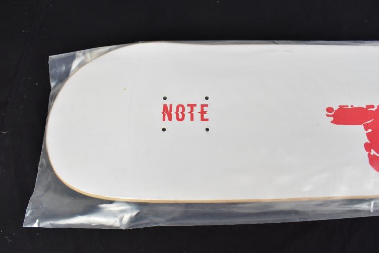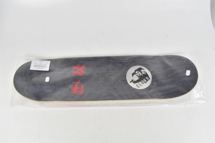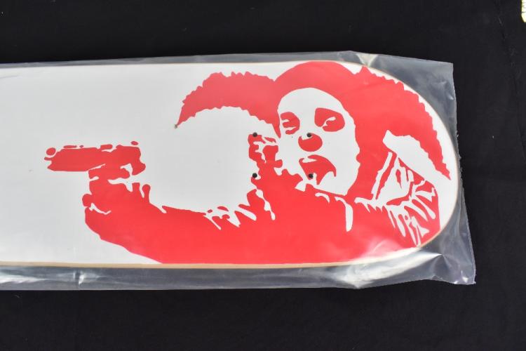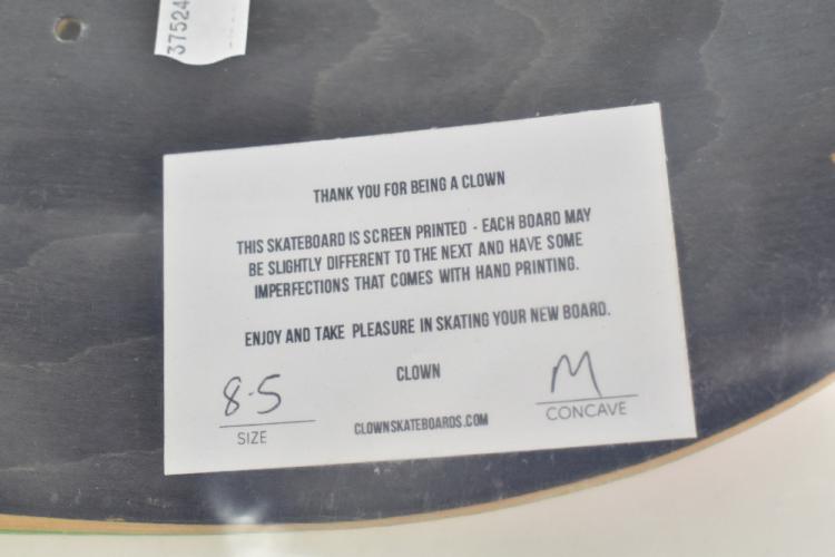 Lot 48 of 552: BANKSY; Clown Skateboards, 'Manchester Skate Deck (2021)', hand screenprinted on skateboard, designed by Banksy in 2000 for Clown Skateboards, with shop logo on 7-ply Canadian maple, complete with certificate of authenticity, length 81cm. (D) From a private Cheshire collector.