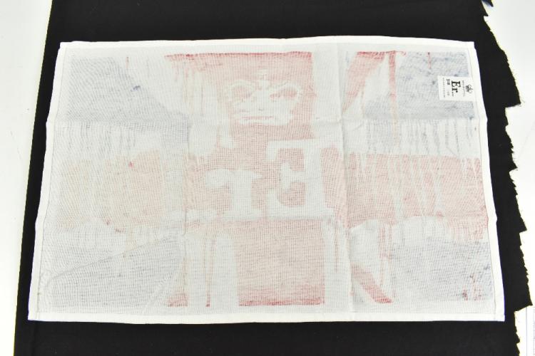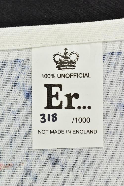 Lot 52 of 552: BANKSY; screenprint on cotton tea towel, 'Er...(Union Flag) (2012)', 318/1000, 62 x 41cm.  From a private Cheshire collector.