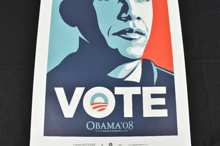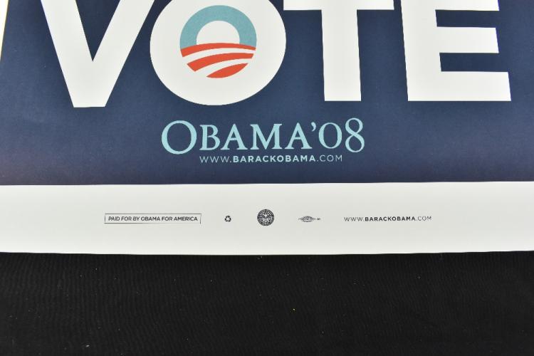 Lot 57 of 552: AFTER SHEPARD FAIREY; colour lithograph, 'Vote Obama 08 (2008)', produced for the presidential campaign fundraiser, unsigned, 61 x 45.5cm, unframed. From a private Cheshire collector.