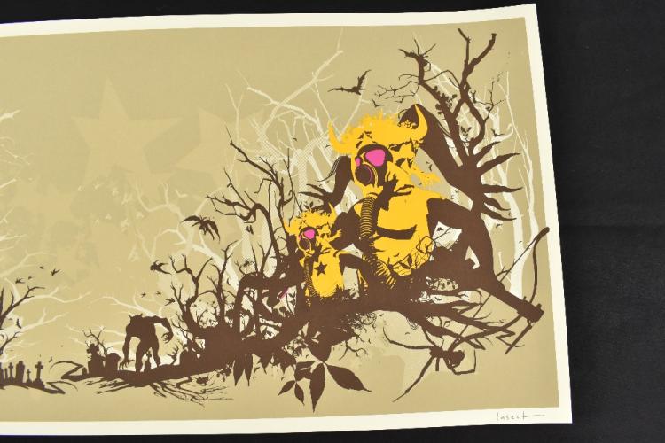Lot 58 of 552: PAUL INSECT (born 1971); screenprint 'Claw Forest (2003)', published by Pictures on Walls (London), signed in pencil, 22/750, sheet size 30.5 x 68.5cm, unframed. (D) NB: Only the first 100 screenprints from this edition were signed.  From a private Cheshire collector.