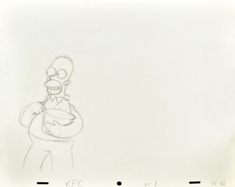 Lot 156 of 552: MATT GROENING (American, born 1954); in-house production drawing, 'Homer Simpson (KFC)', approx. 27 x 31.5cm, unframed.  NB: This image was used in a KFC commercial in Canada 1993. From a private Cheshire collector.