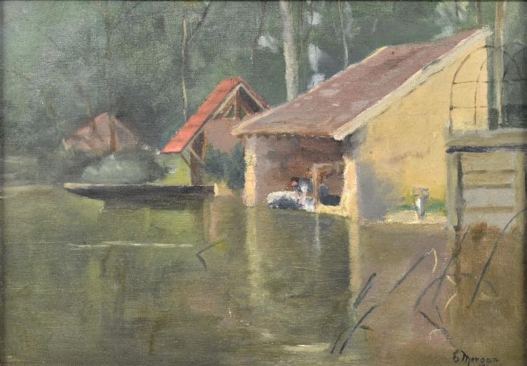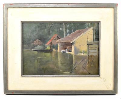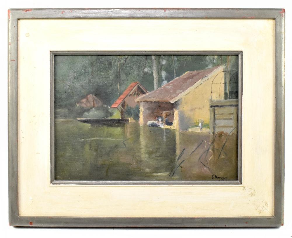 Lot 255 of 552: E. MORGAN; oil on canvas, river scene, signed lower right, 23 x 34cm, framed.