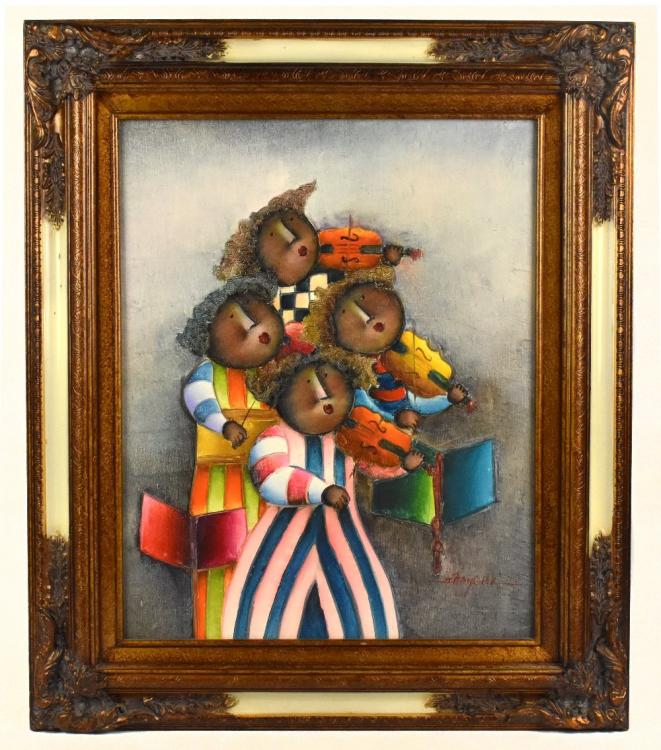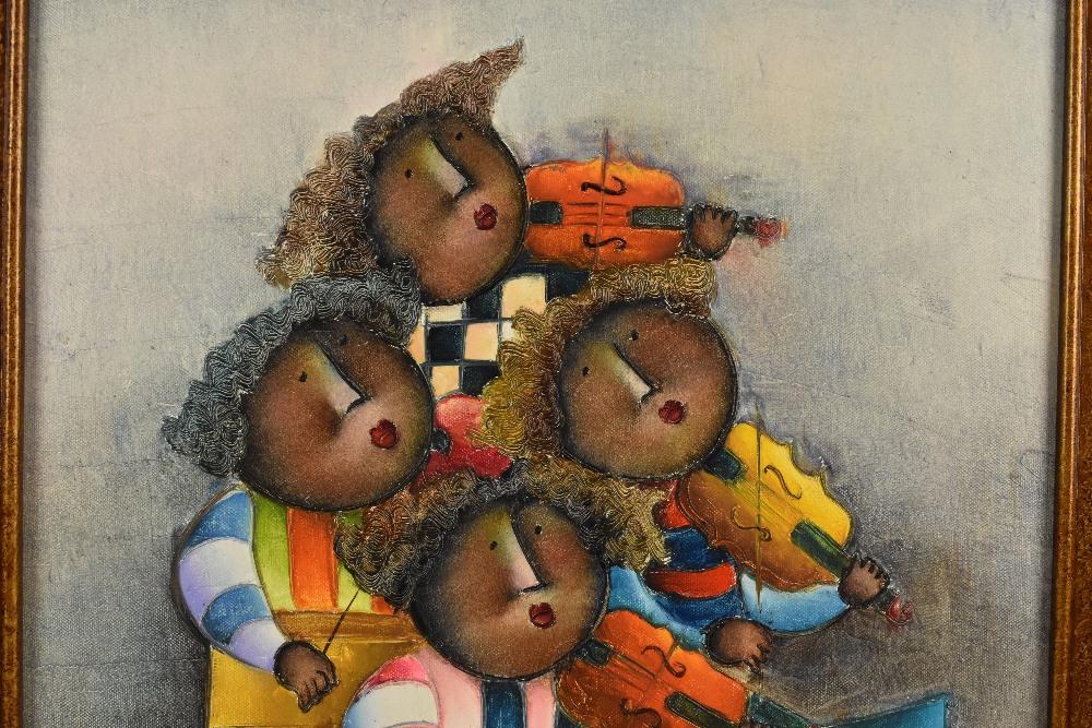 Lot 269 of 552: JOYCE ROYBAL (born 1955); oil on canvas, a quartet of violinists, signed lower right, 49.5 x 39.5cm, framed. (D)