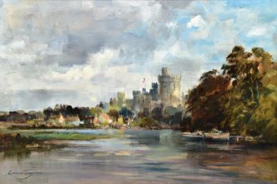 Lot 270 of 552: IVAN TAYLOR (born 1946); two oils on board, 'Tower Bridge London' and 'Windsor Castle Berkshire', 59 x 39cm, framed (2). (D)