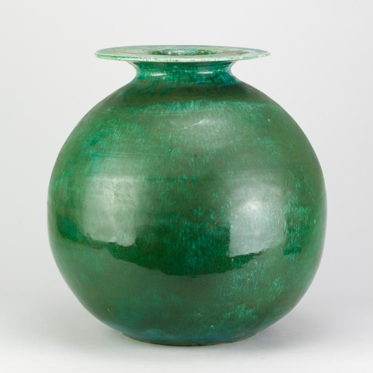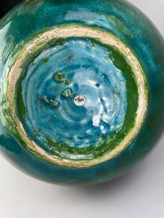 Lot 1 of 681: ABDO NAGI (1941-2001); a large earthenware vase with disc rim covered in metallic green glaze, impressed mark, made 1993, height 34.5cm. (D)