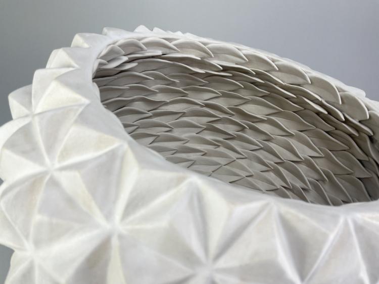 Lot 6 of 681: ADELE HOWITT; 'Hypericum Perforatum', a large stoneware sculpture covered in white tin barium glaze, height 27.5cm, diameter 38cm.