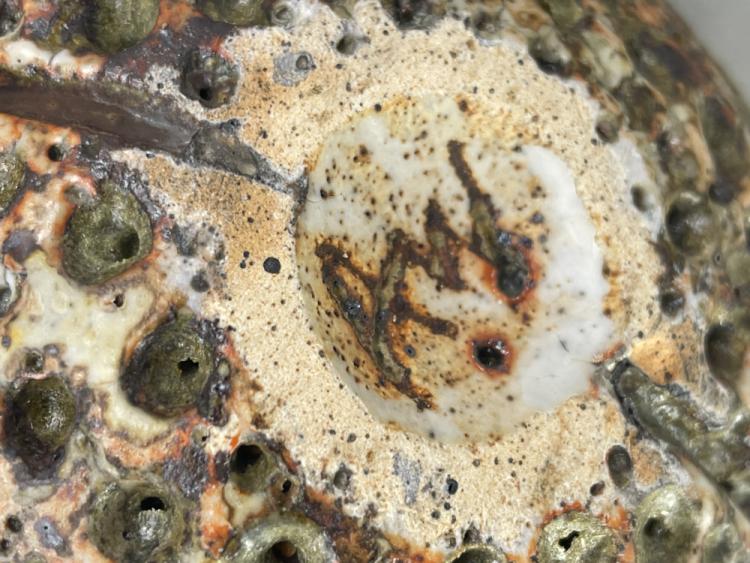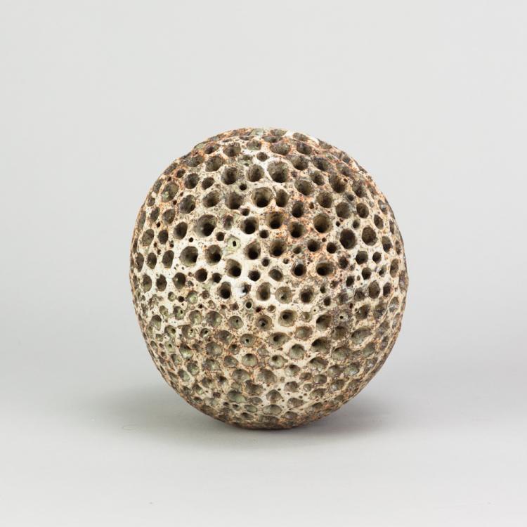 Lot 21 of 681: ALAN WALLWORK (1931-2019); a stoneware split sphere with green glaze highlights, incised AW mark, height 15cm. (D)