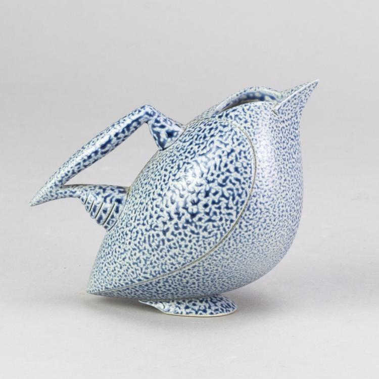 Lot 33 of 681: ANTHONY THEAKSTON (born 1965); a salt glazed bird jug, incised AT mark, height 11cm. (D)