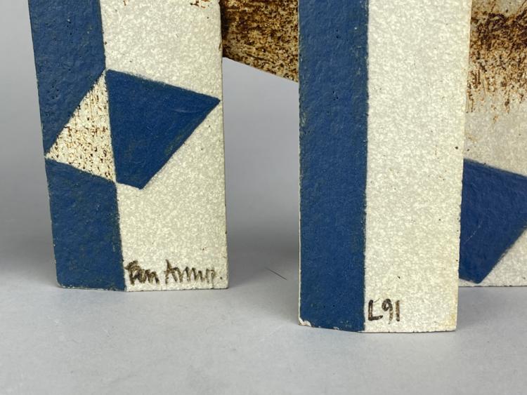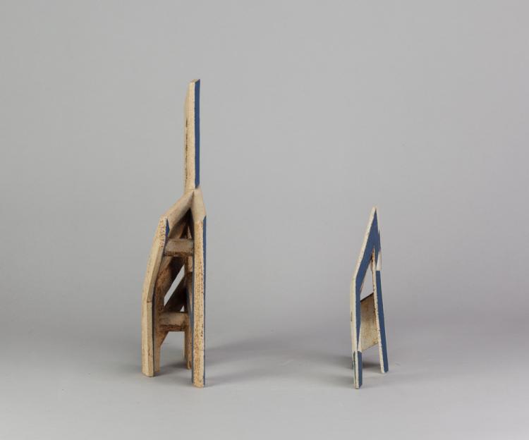 Lot 48 of 681: BEN ARNUP (born 1954); a stoneware trompe l'oeil table and chair, painted signatures and edition nos. L91 & M12, tallest 26.5cm (2). (D)