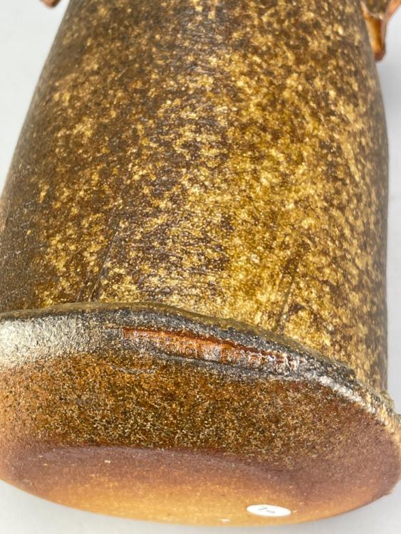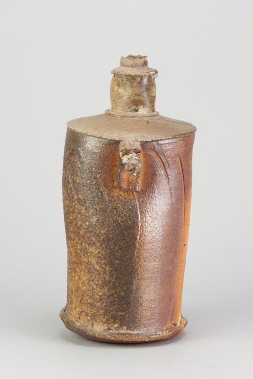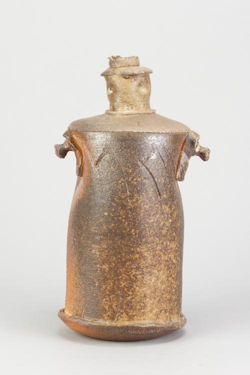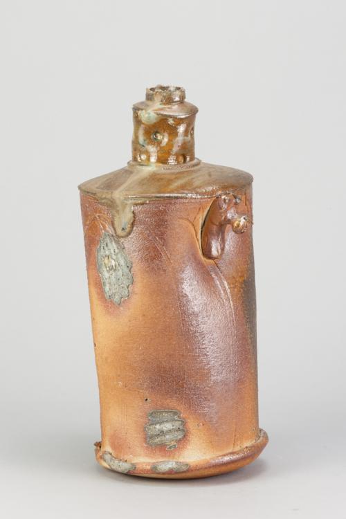 Lot 49 of 681: BEN BRIERLEY (born 1964); a wood fired stoneware lugged bottle sided fired on shells with green ash glaze to neck and shoulder, impressed mark, height 31.5cm. (D)