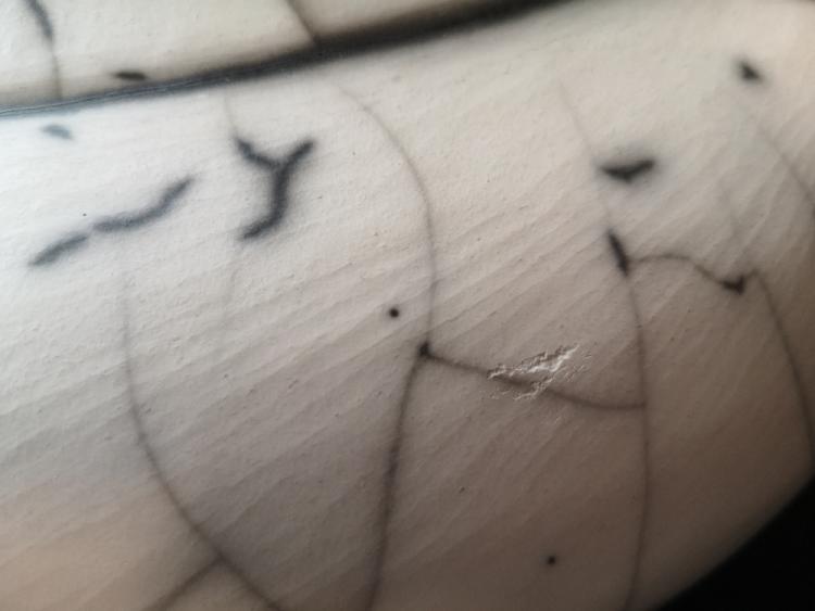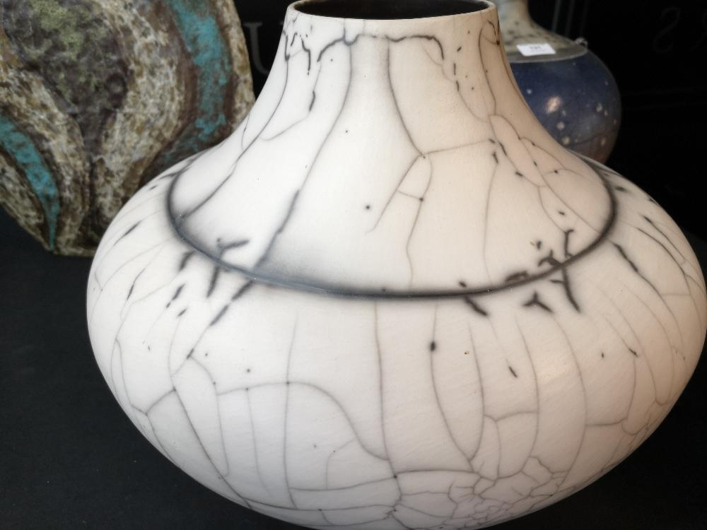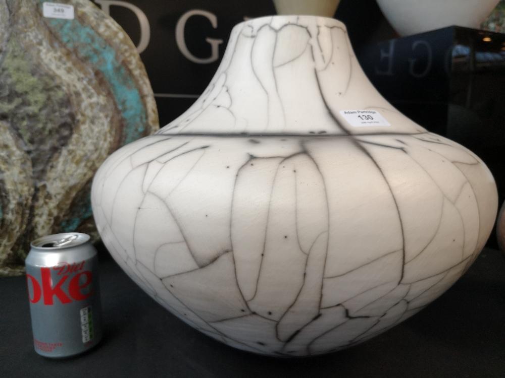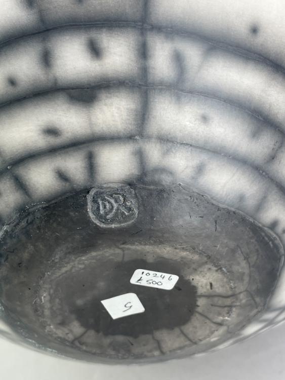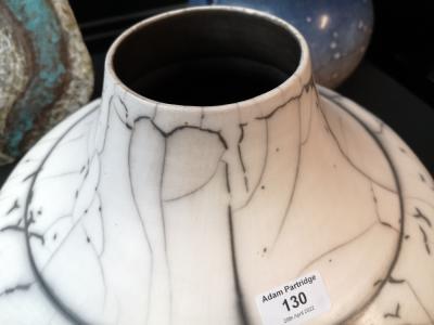 Lot 130 of 681: DAVID ROBERTS (born 1947); a large raku vessel covered in white crackle glaze, impressed DR mark, height 32cm, diameter 36.5cm. (D)