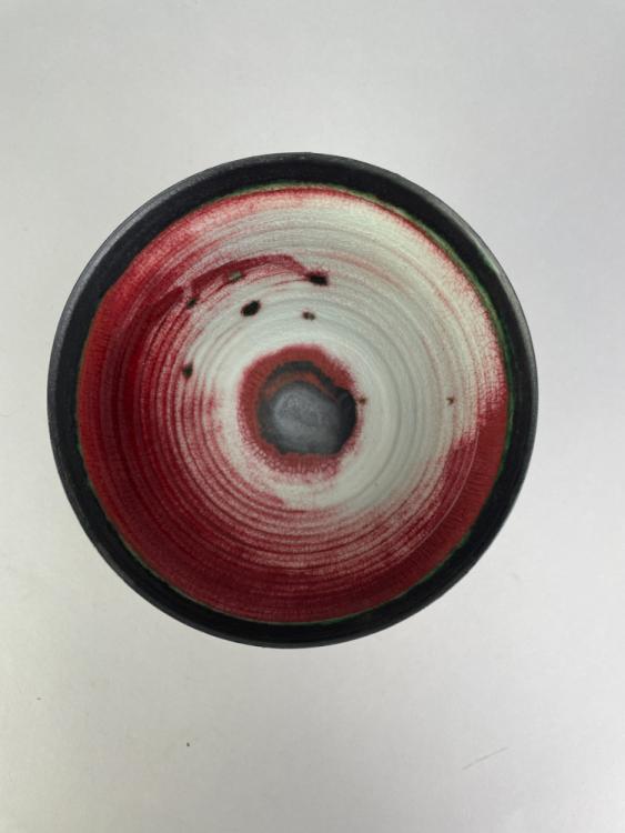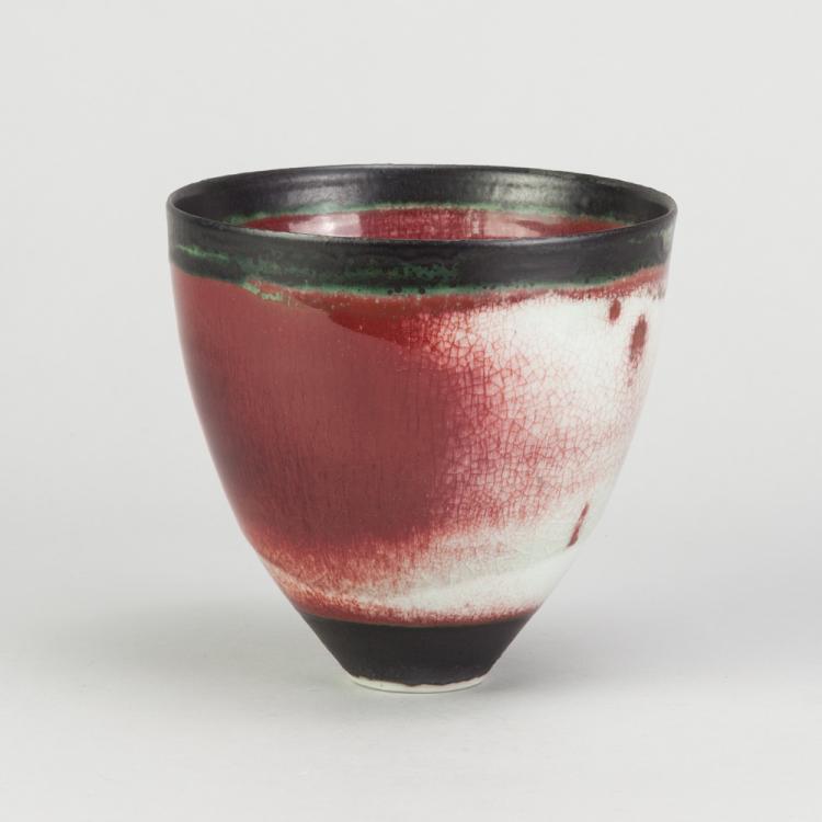 Lot 151 of 681: EDDIE CURTIS (born 1953); a deep porcelain bowl partially covered in copper red glaze with manganese and copper green rim, impressed EC mark, height 13.5cm. (D) Provenance: Purchased from Lund Gallery, Easingwold, 2009.