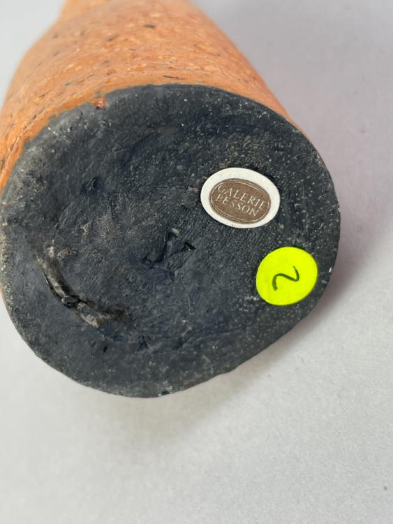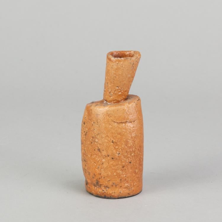 Lot 156 of 681: Attributed to ELIZABETH RAEBURN (born 1943); a small raku bottle form, impressed mark (not her usual), Galerie Besson label, height 11cm. (D)