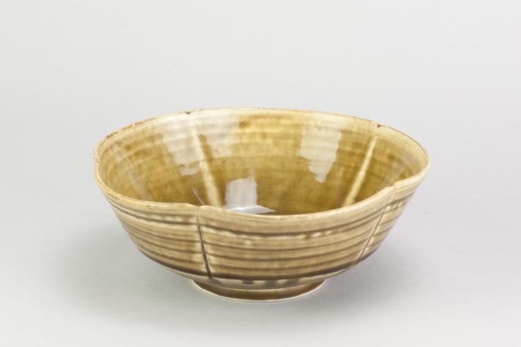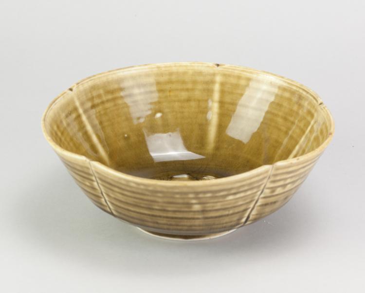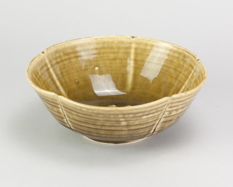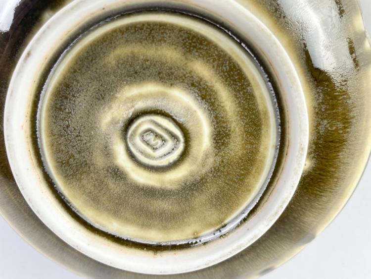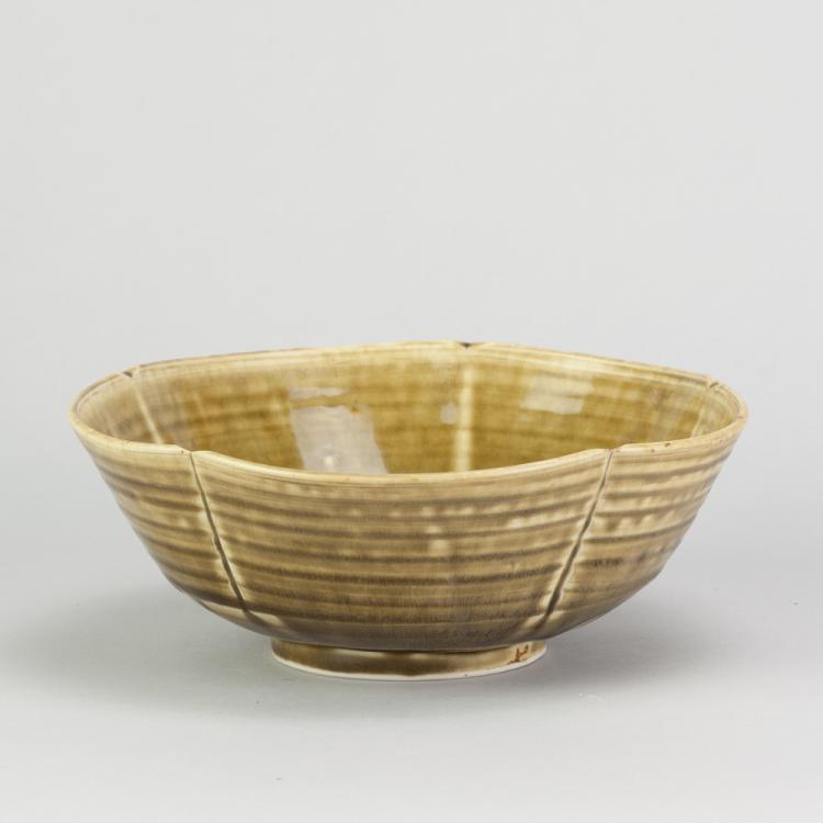Lot 166 of 681: GARY STANDIGE (1946- 2016); a porcelain bowl with scalloped rim covered in a running green glaze, impressed GS mark, diameter 19cm. (D)