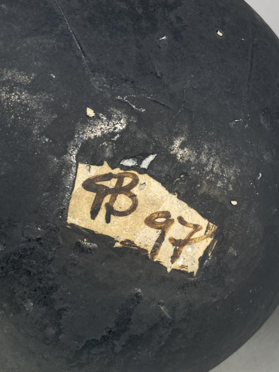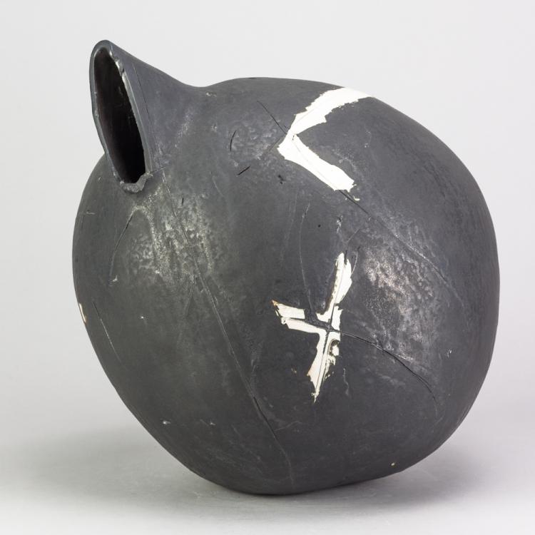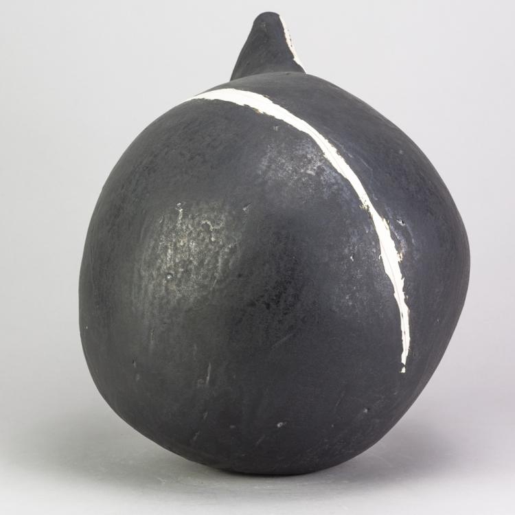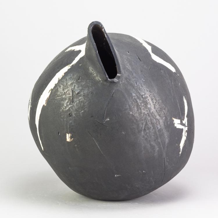 Lot 176 of 681: GORDON BALDWIN (born 1932); an earthenware vessel covered in black pigment with incised lines picked out in white, painted GB mark dated 1997, height 32.5cm. (D)