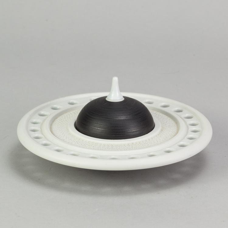 Lot 188 of 681: HORST GOEBBELS (born 1936); a porcelain 'Saturn' box and cover with perforated rim, incised HG mark, diameter 13.5cm. (D) Provenance: Purchased from Lund Gallery, Easingwold, 2008.