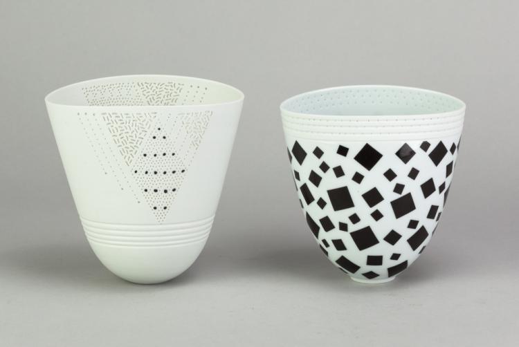 Lot 189 of 681: HORST GOEBBELS (born 1936); two porcelain vessels with perforated patterns, incised HG marks, tallest 12cm (2). (D) Provenance: Purchased from Lund Gallery, Easingwold, 2008.