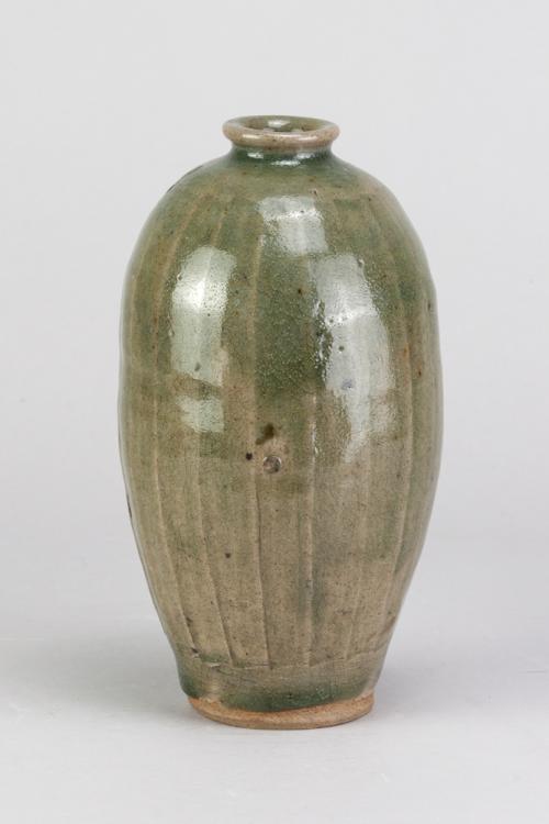 Lot 353 of 681: KATHARINE PLEYDELL-BOUVERIE (1895-1985); a stoneware lightly faceted bottle covered in green ash glaze, painted code number, height 20.5cm. (D)