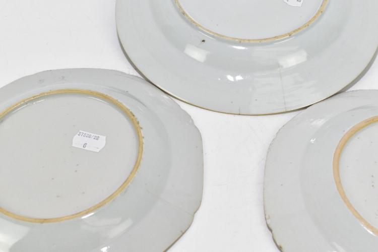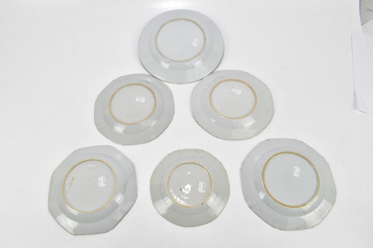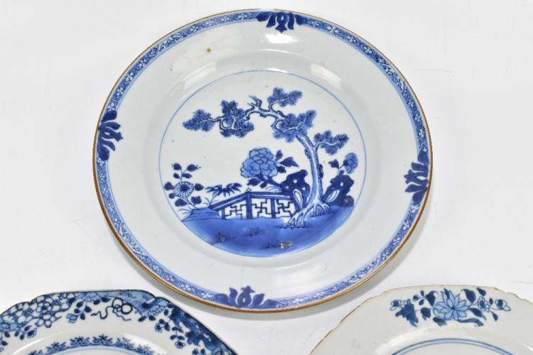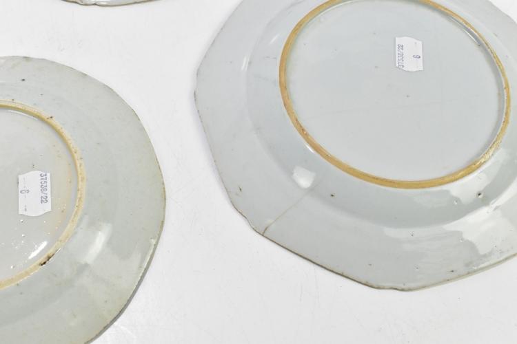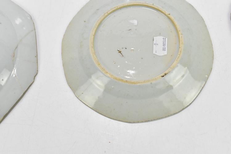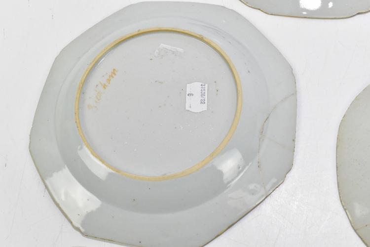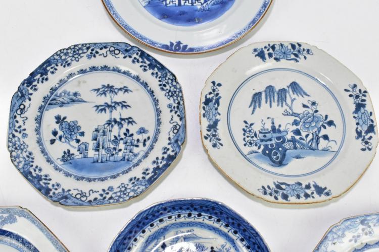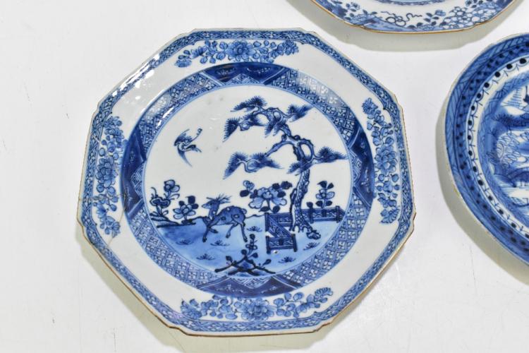 Lot 13 of 2095: Four 18th century Chinese Export blue and white porcelain plates of octagonal form, decorated with landscape scenes and two later examples (6).
