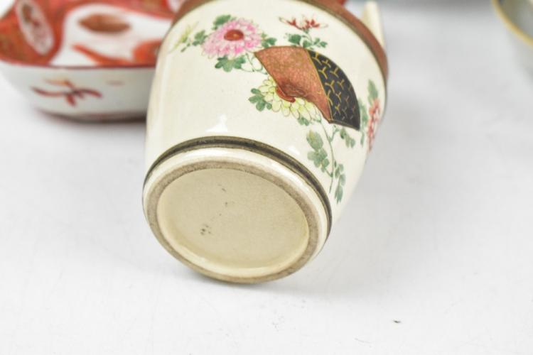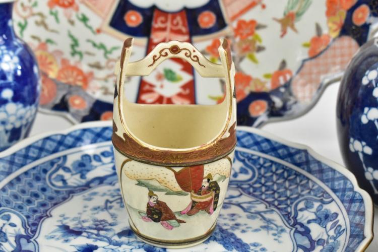 Lot 30 of 2095: A mixed lot of Oriental ceramics including Japanese Imari charger, two Chinese prunus ginger jars and covers, Japanese Satsuma basket, etc (part af).