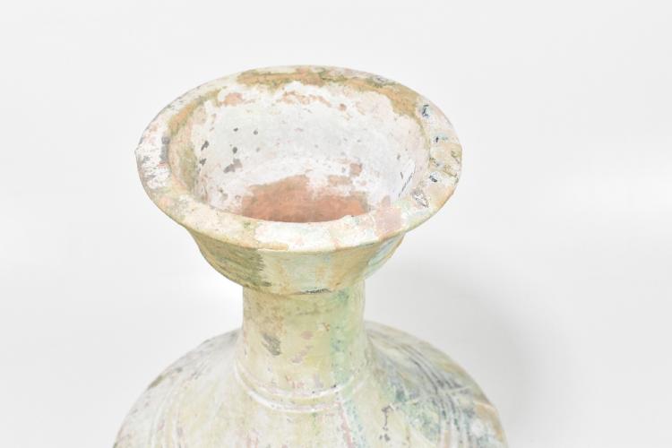 Lot 48 of 2095: A Chinese Han Dynasty pottery storage jar, with a muted green glazed body, height 42cm.