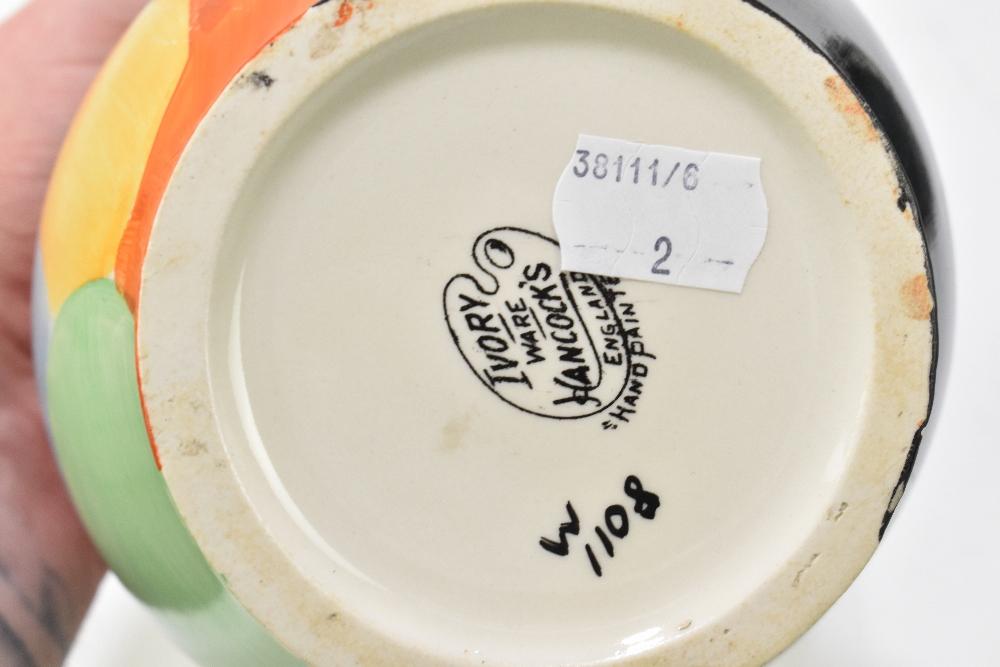 Lot 675 of 2095: STAVANGERFLINT; a Norwegian Art Pottery vase decorated with stylised birds and foliate detail, height 23cm, and a Hancocks Ivory Ware hand painted Art Deco style jug, height 18cm (2).