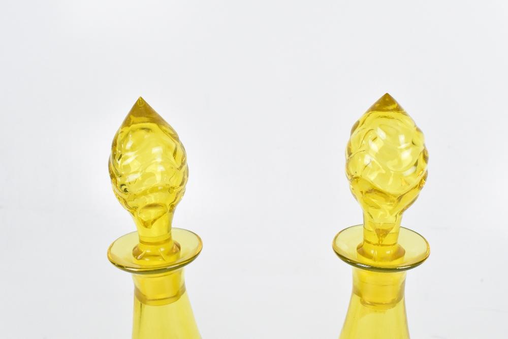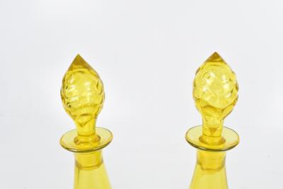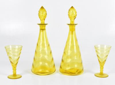 Lot 1494 of 2095: WEBB; a pair of yellow/amber tinted decanters and stoppers of tapering form with waved decoration, height 33cm, and a similar pair of glasses, height 14.5cm (4).
