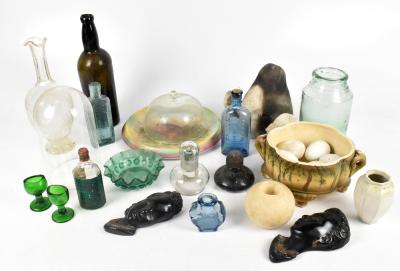 Lot 1502 of 2095: A 19th century green glass wine bottle, height 28cm, with other decorative 19th and 20th century ceramics and glass.