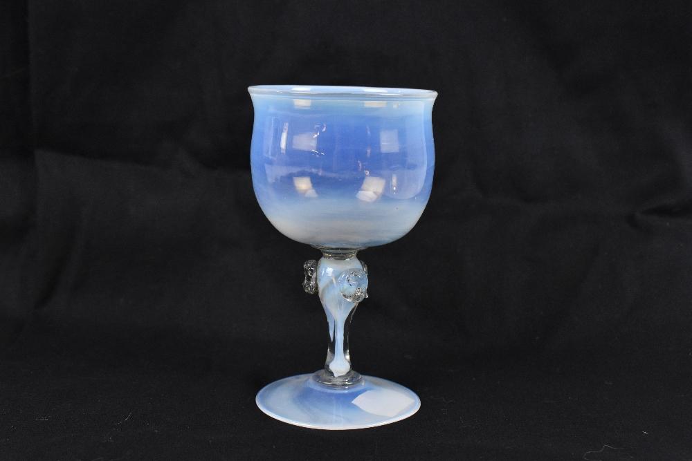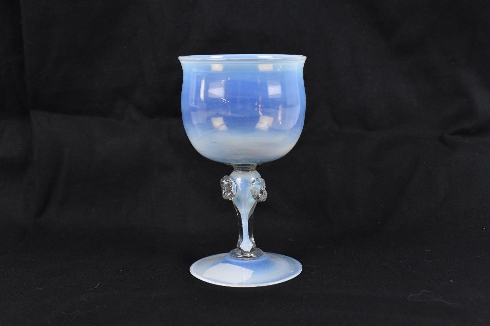 Lot 1507 of 2095: JAMES POWELL FOR WHITEFRIARS; an opaque glass with plain bowl above baluster stem applied with three oval mounts to spreading circular foot, height 11.5cm.