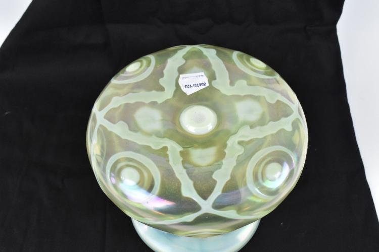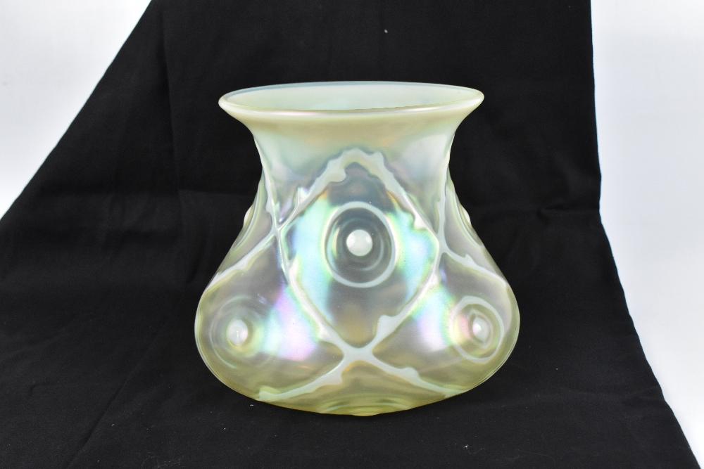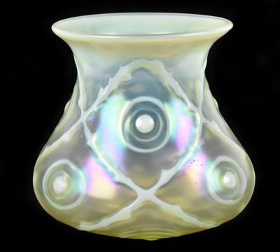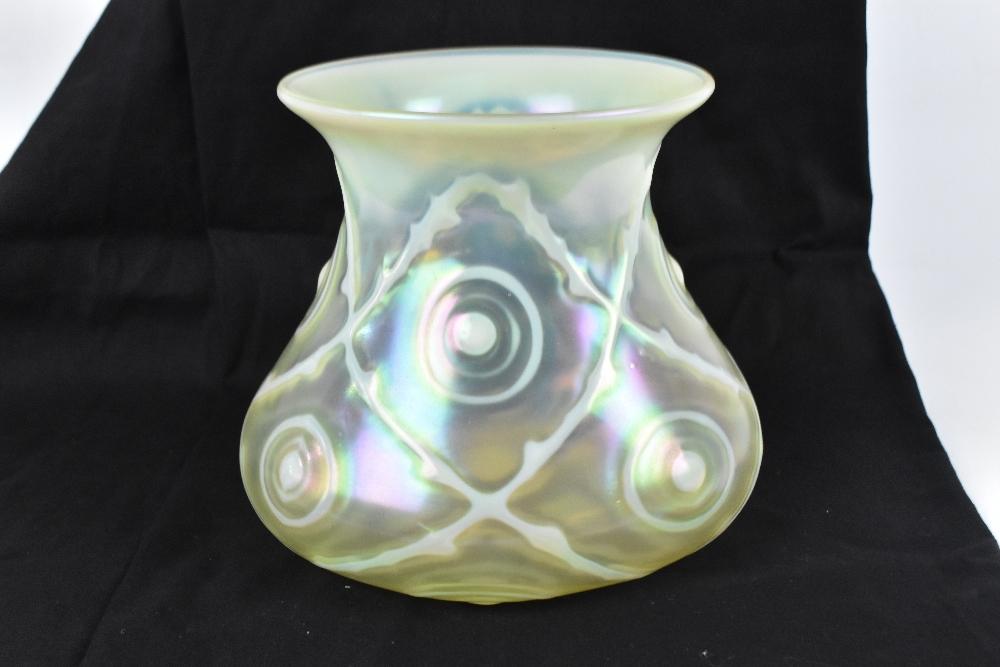 Lot 1508 of 2095: An opaque and milk glass vase, probably Stourbridge, with flared rim, roundels included to the glass to the main body and with raised pontil, height 16cm, diameter approx 19cm.