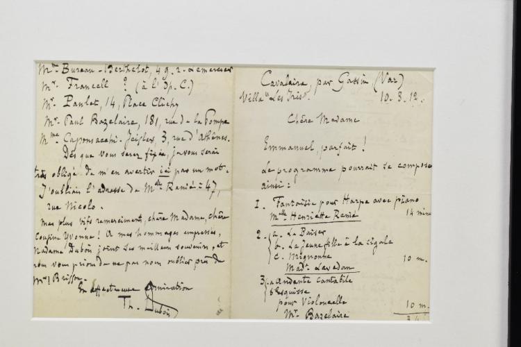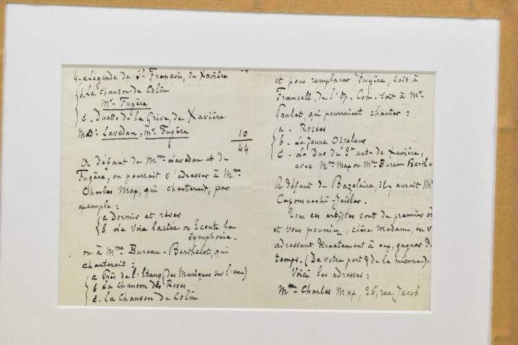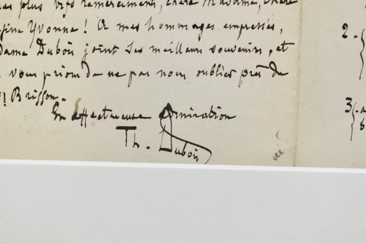 Lot 1526 of 2095: CLEMENT FRANCOIS THEODORE DUBOIS (1837-1924); a hand written and signed letter in French, written on four sides, framed and glazed on both sides, the letter 14cm x 22cm