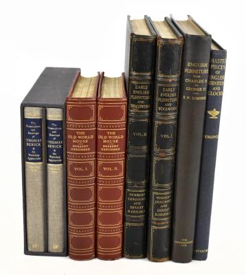Lot 1544 of 2095: SYMONDS (R), ENGLISH FURNITURE FROM CHARLES II TO GEORGE II; limited edition, 649/1000, with colour frontis piece and other illustrations; MASTERPIECES OF ENGLISH FURNITURE AND CLOCKS inscribed and signed by the author on the front blank paper and dated June 1944, colour frontis and other illustrations; CESCINSKY (H), EARLY ENGLISH FURNITURE & WOODWORK, two vols., 1922; THE OLD WORLD HOUSE, two vols.; BAIN (I), THE WATERCOLOURS AND DRAWINGS OF THOMAS BERWICK, two vols. (7)