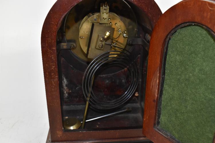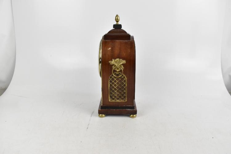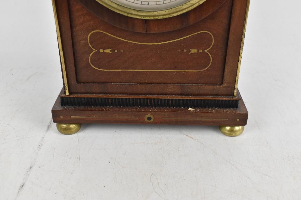 Lot 2362 of 2095: An early 20th century French mahogany and brass applied mantel clock in the 19th century style, the silver dial with Roman numerals, the movement stamped D.C.Co raised on four brass feet, height 40cm.