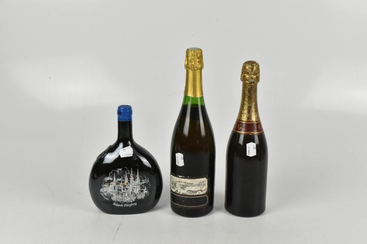 Lot 5 of 2522: KRUG & CO; a bottle of Champagne Private Cuvee Extra Sec 1953, with a bottle of Bouvet-Ladubay Crement Brut, and a special edition Linde bottle of 1997 Würzburger Stein Bacchus Kabinett (3)