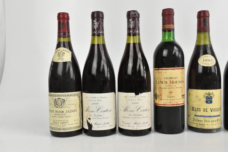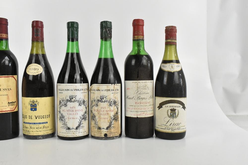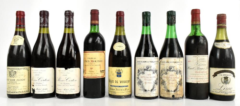 Lot 178 of 2522: MIXED WORLD; nine bottles of mixed red wine including two bottle of Ellis, Sun & Vidler Ltd, Hunter River Valley red Shiraz 1975, 73cl, 11.5%, two bottles of Aloxe-Corton 1989, etc (9).