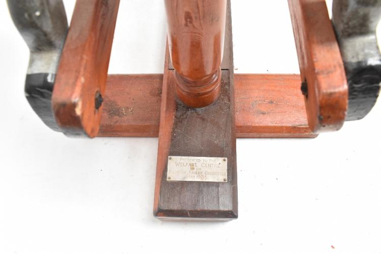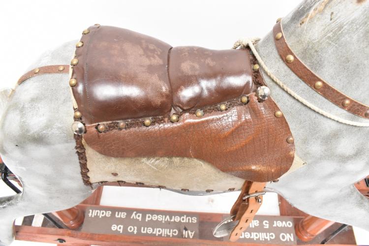 Lot 1291 of 2522: A 20th century child's rocking horse, with plaque inscribed 'Presented to the Welfare Centre by the Poynton Jubilee Community May 1935', length 124cm.